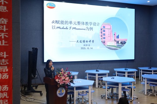 2025年10月14日下午,大连市初三年级英语研训活动在博知中学举行。活动主题为“核心素养导向下的单元教学设计研究——AI赋能英语课堂教学实践”。各区市县九年级英语研训教师以及备课组长共120余人参会。