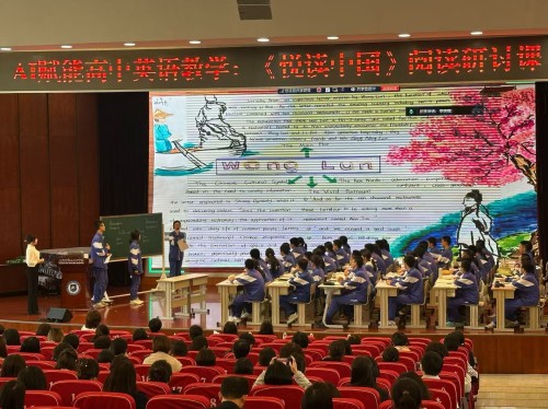 活动中,大连市第二十四中学青年教师张毓博呈现了一堂题为《LiBaiandHisFriends》的AI赋能阅读研讨课。课程以学生为中心,借助人工智能技术推动互动与探究,引导学生深入理解文本主题,课堂氛围活跃,展现了科技与人文融合的教学实践。丁丽云老师开展了主题为“《悦读中国》与高中英语教材的融合”专题分享,从课程设计、资源整合及AI应用等多方面提供教学思路,助力教师拓展教学视野。