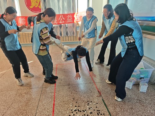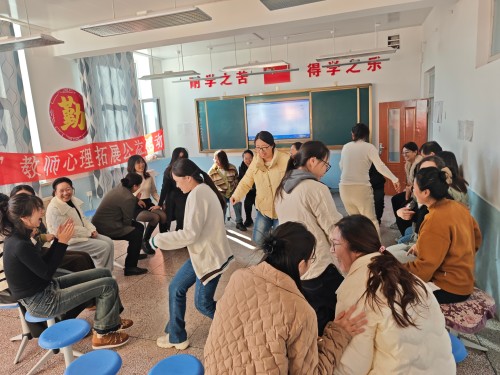 活动在“破冰”游戏中拉开帷幕。“大风吹”指令一出,教师们迅速换位,在欢笑中拉近彼此距离;“互动按摩”时,轻柔的拍打传递着同事间的温暖关怀;“桃花朵朵开”则将大家凝聚成团,现场气氛热烈,疲惫尽散。