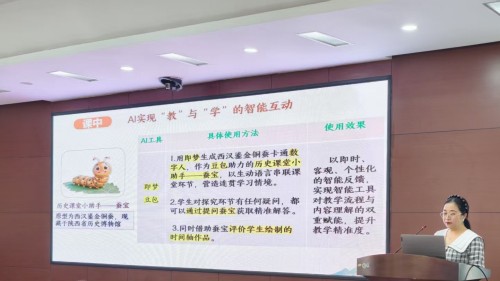 活动中,大连市第七十一中学的王丽莉老师与大连市高新技术产业园区第四学校的刘佳宁老师分别展示了AI赋能历史课堂教学的无声课堂,并深入介绍了AI技术在课堂教学中的实际应用情况。