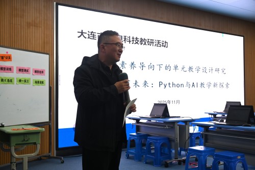活动聚焦Python编程与人工智能教学的融合实践。大连海事大学附属学校苏婉莹老师执教《鸡兔同笼巧计算》一课,通过枚举法引导学生从自然语言描述过渡到流程图设计与Python编程实现,有效培养了学生的计算思维。大连嘉汇第三中学林姿岑老师则带来课例《AI“慧”识贝——基于KNN算法的机器学习》,组织学生在真实情境中体验数据标注、特征提取与模型训练的完整流程,深化了教师对人工智能原理的理解。市研训教师赵书阳结合课例进行了专业评课与标准解读。