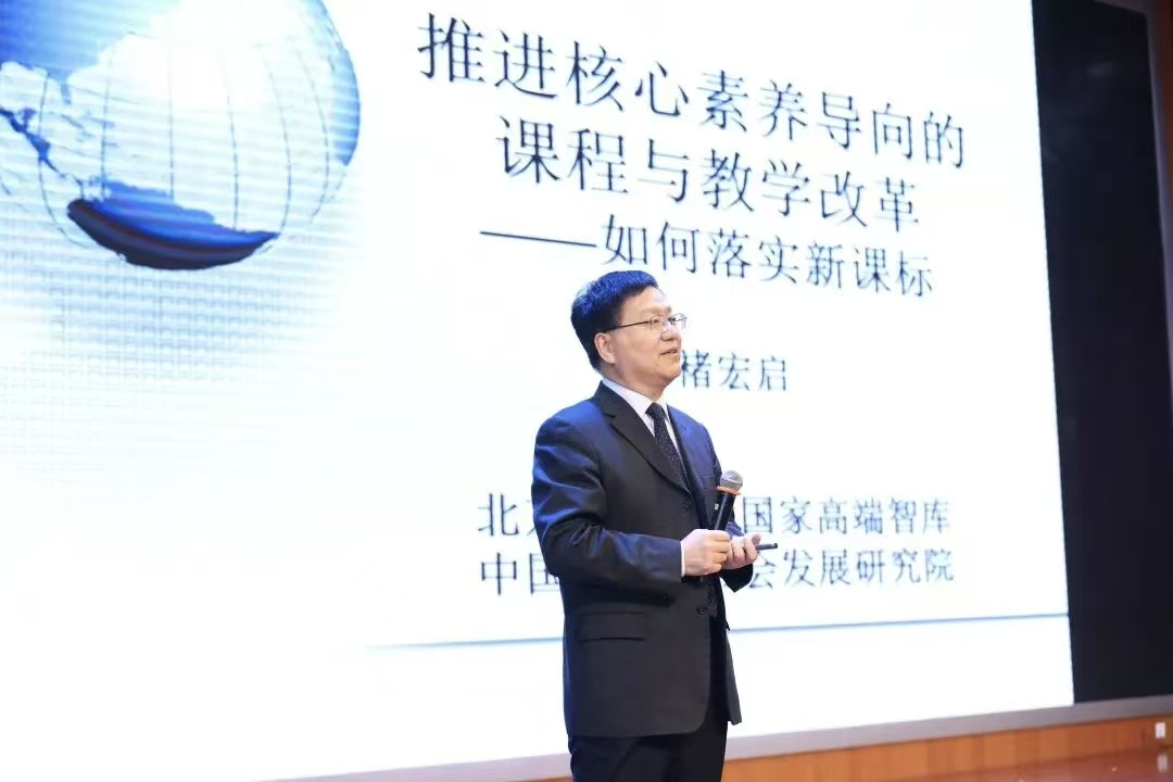 成员校长们听取了大连市“滨城名校长”田巨坤工作室导师——北京师范大学中国教育与社会发展研究院褚宏启教授作的《推进核心素养导向的课程与教学改革》专题报告,并与褚宏启教授深入交流。