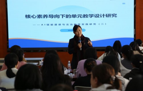 活动伊始,张雪梅以“做幸福、健康、生态良好的教育者”为题,带来开场讲座,引导教师实现自我关怀与专业发展。随后,金普新区唐楠老师就《AI赋能初中道德与法治教学》作专题分享,探讨技术融合对课堂实效的提升路径。