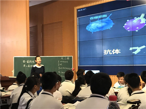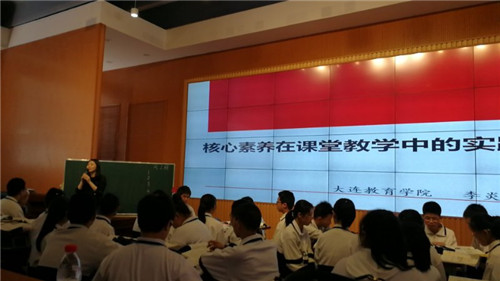 旅顺教师进修学校胡军主任和王彦璟主任助理参加了本次活动。旅顺新城实验学校的韩雪梅校长带领老师们参观了新城实验学校,并阐释了要做"大格局"国际化学校的办学目标。旅顺教师进修学校的生物研训教师刘广民老师进行了"旅顺区域初中生物落实核心素养"的专题汇报。在本次研训活动中,新城实验学校的金珊老师,做了《免疫与计划免疫》的课例展示,金老师利用自主学习、小组合作等教学方式帮助学生形成生物学思维方式,配音活动和游戏环节受到在场所有老师的赞赏。李炎老师结合核心素养的主题,针对"核心素养在课堂教学中的实践"进行了专业指导,并对2018年中考提出了建议和要求。