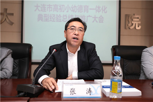会上,张涛书记全面阐释了高初小幼德育一体化建设的重要意义,并对如何深入开展德育一体化建设提出了具体要求:一是深入学习、贯彻落实《中小学德育工作指南》。基层学校要组织教师认真学习和领会《指南》对各学段德育目标、德育内容、德育途径的具体要求,严格落实德育课、心理健康课、团队活动、实践活动的课时数,切实做到课程育人、文化育人、活动育人、实践育人、管理育人和协同育人。二是要发挥学院体制和专业优势,引领区域德育一体化建设。学院目前已经完成13个学科德育指导意见的研发工作,今年将在基地校进行试用和征求意见,进一步完善、修订学科德育指导意见;建立德育一体化实践基地,发挥基地辐射、带动作用,培树典型,征集、评审学科德育案例;开展思政课跨学段一体化教研,针对学科特点跨学段一体化组织教研活动,探索各学段相互衔接、螺旋上升的德育工作策略;进行大连市高初小幼德育地方课程开发研究,探索面向大连市中小学生的德育地方课程;研发和使用教师教育德育课程,进一步丰富师德培训内容体系;构建多元化育人机制,建立家、校、设协同育人机制,帮助学生"扣好人生第一粒扣子"。三要加强师德师风建设,全面提高教师队伍素质。要培养学生成为德智体美劳全面发展的社会主义建设者和接班人,教师必须师德高尚、率先垂范,不断增强育德育人能力,充分发挥课堂教学主渠道作用,将德育融入渗透到教育教学全过程。