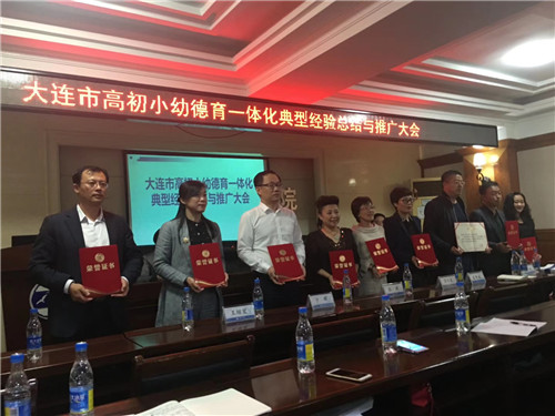 王绍宏书记宣读了德育一体化先进典型经验获奖名单。本次活动全市111所基层学校进行了材料申报,其中高中24份、初中22份、小学49份、幼儿园16份,覆盖全市13个区市县、四个学段。经过专家评审、现场考察最终评选出先进典型经验39项。获奖代表上台领奖后,大连市第八中学、东北师范大学大连保税区实验学校、大连市西岗区教师进修学校附属学校、大连市普兰店区丰荣中心小学、大连市中山区春天幼儿园分别做了经验交流。