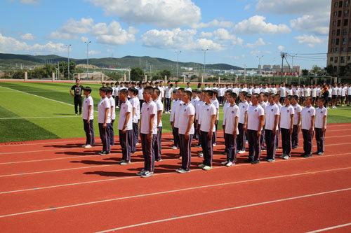 新学期开学,初一初二学生在紧张有序的气氛中接受了入学后第一次身体上的锤炼和精神上的洗礼,为期一周的军训拉开大幕。