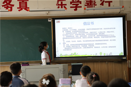近日,学校各班级召开“节约用电从我做起”的主题班队会。班主任通过课件、视频、童谣等学生喜闻乐见的形式,让学生知道为什么节约用电,怎样节约用电。认识到节省用电我们只喊口号是行不通的,我们还要把握节省用电的小窍门。