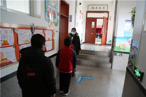 接着进行的是三、四年级入班前测温演练。班主任在班级门口给学生们进行体温检测,学生们间隔一米,井然有序,老师测温后填写本班学生晨午检体温记录表。如果发现体温有异常,及时上报给学校,疫情防控领导小组的各个成员按照职责分工做好应急处理。