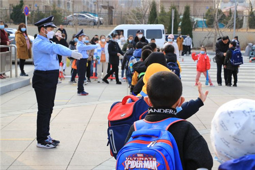 通过两周的时间,接送学生车辆乱停乱放、占用人行横道上下车、低年级同学过马路时追逐玩耍等不文明现象得到很大改善,红领巾志愿者们担任的“小交警”受到了家长和附近群众的好评。