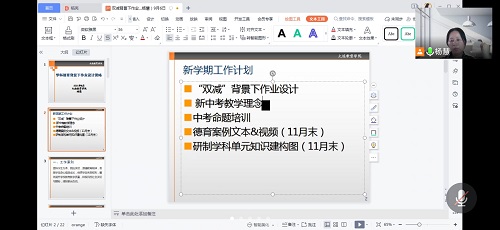 此次线上教研活动共同探讨合理设计基于学科德育背景下的作业设计,并对各区域作业设计方案实施要求做了细致的部署与安排。同时鉴于新生未来考试评价方案与教学的有机结合等实践性工作指明了教学方向。