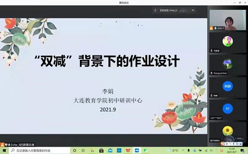 9月7日,初中化学"双减"背景下作业设计研讨活动,在腾讯会议平台上举行。大连教育学院初中研训中心研训教师、各区市县初中化学教研员、各校教研组长共计241人参加了活动,会议由市研训教师李娟主持。