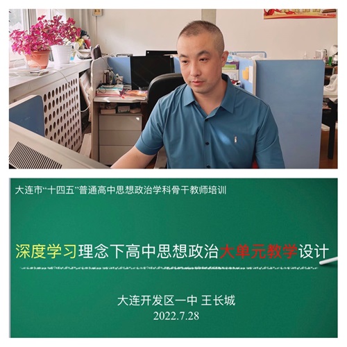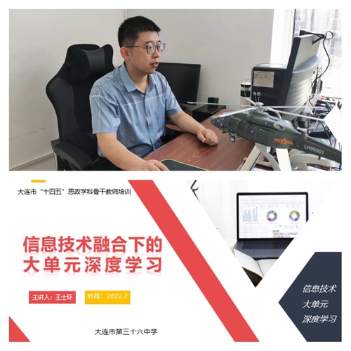第二次培训邀请了大连市第三十六中学科研室主任王士环老师和开发区第一中学王长城老师。王士环老师做了题为《信息技术融合下的大单元深度学习》的专题讲座,围绕破解浅层教学、构建单元教学、使用信息技术三个方面通过实例讲解和实际操作等方式就如何理解深度学习目标下的大单元教学与信息技术深度融合与参会老师进行了交流;王长城老师以《深度学习理念下高中思想政治大单元教学设计》为题,在进行了理论回顾与深度解析的基础上,以必修1“中国共产党为什么能”和必修3“人民当家作主”这两个课例为样本,重点阐述了如何进行大单元教学设计,从而提高学生学习兴趣,发展学科核心素养。