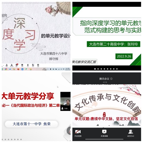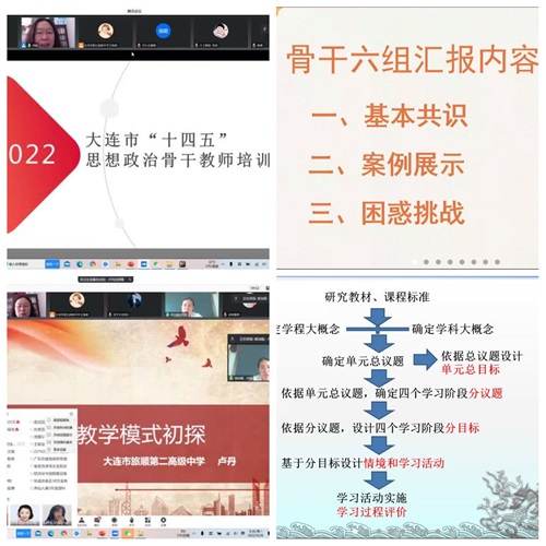 本年度培训共分三次举行。第一次培训邀请了大连市第三十六中学党支部副书记彭婕老师和大连育明高级中学鞠丽老师做专题报告。彭婕老师以《新课标新教材新高考——指向深度学习的“大单元教学”》为题,围绕三新视域下的深度学习,结合彭婕思政名师工作室的大单元教学设计成果,就为什么要推进深度学习、如何确定单元教学主题、如何设计单元学习活动、如何开展持续性学习评价等问题进行了分析;鞠丽老师以《深度学习视域下的单元教学整合》为题,从“深度学习的背景与挑战、对深度学习的认识与理解、深度学习与单元教学整合、深度学习视域下单元教学的高考备考策略”四个方面和大家进行交流,内容丰富、思想深刻,为深度学习的教学实践提供了借鉴和参考。