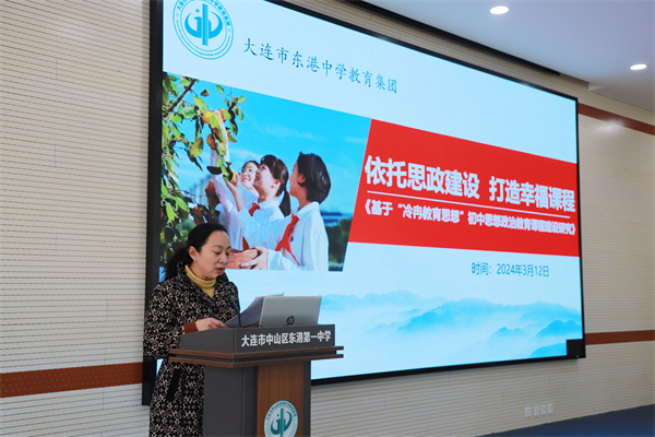 会上,工作室成员东港第一中学副校长贾音以《依托思政建设打造幸福课程》为题,作经验交流发言。大连市中山区东港第一中学作为"大中小思政一体化建设"工作联盟校的牵头单位,以集团化办学为载体,着眼学生未来发展,构建思政课程内容体系,探索思政课程实施新样态,逐步形成了大中小学思政一体化建设工作新格局。