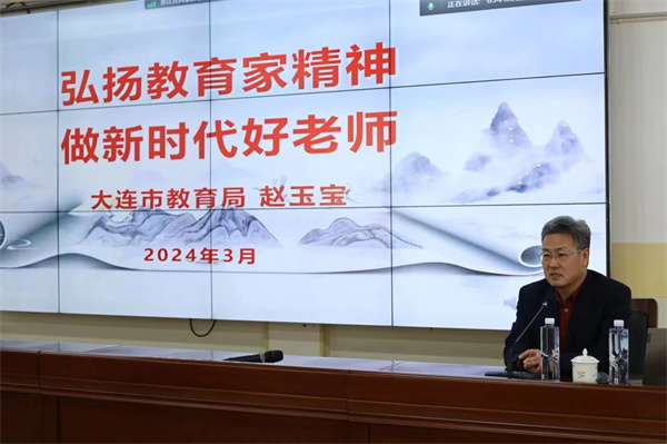 百年大计,教育为本,教师是立教之本、兴教之源。为深入学习贯彻习近平总书记重要指示精神,营造学习和弘扬教育家精神的良好氛围,吴晓红名校长工作室的成员学校大连市第六十三中学邀请了大连市教育局二级巡视员赵玉宝教授为全体教师做题为《弘扬教育家精神,做新时代"四有"好老师》的精彩报告,工作室的其他成员一同线上参加了本次活动。