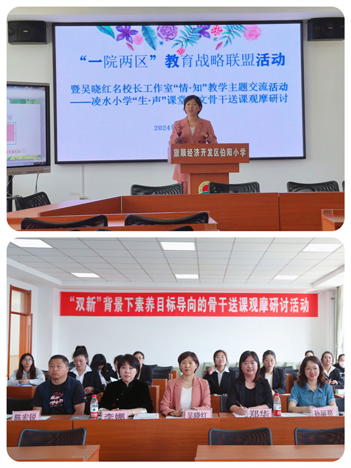 为充分发挥吴晓红名校长工作室的辐射引领作用,推进"一院两区"教育战略合作,5月16日下午,"一院两区"教育战略联盟活动暨吴晓红名校长工作室"情˙知"教学主题交流活动--凌水小学"生·声课堂"语文骨干送课观摩研讨活动在旅顺经济开发区伯阳小学成功举行。凌水小学校长吴晓红、伯阳小学校长李娜及两校班子部分成员和教师代表参与本次活动。