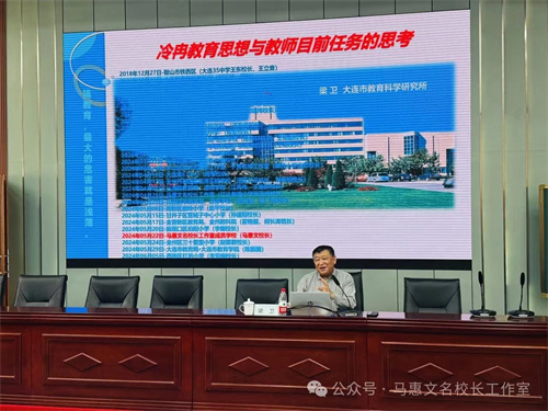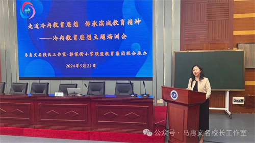 2024年5月22日下午,大连市马惠文名校长工作室、甘井子区郭家街小学联盟教育集团在甘井子区教师进修学校开展了主题为"走近冷冉教育思想,传承滨城教育精神"的研修活动。活动由马惠文校长主持,特聘专家梁卫所长为大家进行"冷冉教育思想与教师目前任务的思考"专题讲座,成员校校长以及200余位干部教师参加此次活动。