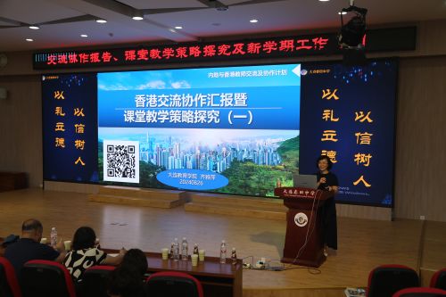 活动历时两个小时。首先由齐老师总结了为期一年的香港交流协作工作。她以香港印象为出发点,利用互动软件和精彩视频,为参会教师概括介绍了香港的政治、历史、文化、地理等方面特色;然后对比展示了两地可相互借鉴的教育、教学亮点;接着在“教学策略探究及建议”这一板块,齐老师在展示了“问题导学法”在香港课堂得以推广、深化与发展的情况之后,重点以九年级上下册第一单元为例,引领教师探究以“守正创新,用有效教学之不变应万变”为核心的迎接省中考六大策略:用好教材,以读促写,读写双赢;落实一课一得,提高课堂效率;加强“1+x阅读”,夯实读书底蕴;建构知识网,加强整体系统认知;开展情境教学,引导实践应用;实施课程重整,落实单元整体教学。最后由杨丹妮老师解读初中语文学科上学期的教研工作重点,并从关注新教材的角度引导教师积极有效落实新课程标准。