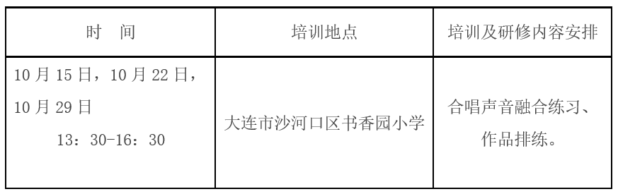 为贯彻落实《教育部关于全面实施学校美育浸润行动的通知》和《辽宁省全面实施学校美育浸润行动工作方案》精神,进一步落实立德树人的根本任务,提高音乐教师专业素养和教育教学能力,提升音乐教育研究和课堂教学质量,提高学生的审美及人文素养,大连教育学院艺体劳研训中心拟于2025年10月继续举办义务教育音乐教师合唱教学能力提升专项培训。