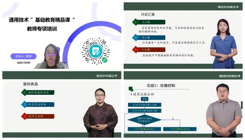 10月9日,高中通用技术学科线上开展了“基础教育精品课”教师专项培训活动。本次活动由艺体劳研训中心通用技术学科研训教师路妍组织,全市50余名教师线上参加了本次活动。