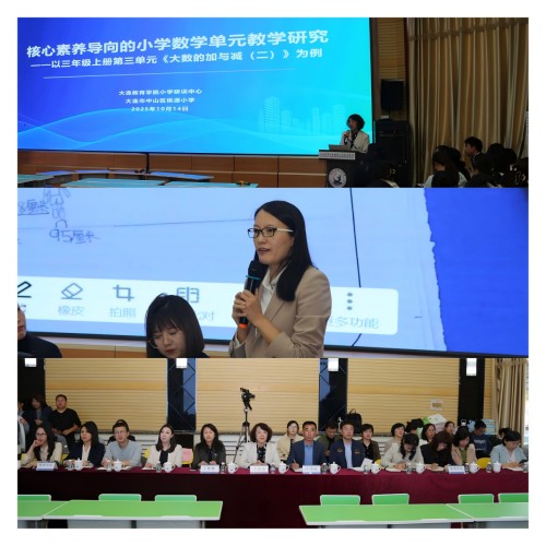 10月14日,小学研训中心示范性研训活动在中山区桃源小学举办。小学研训中心主任于业宏出席活动并讲话。各县市区小学数学研训教师及三年级数学任课教师共200余人参加活动。本次活动由小学研训中心副主任刘稀凤主持。