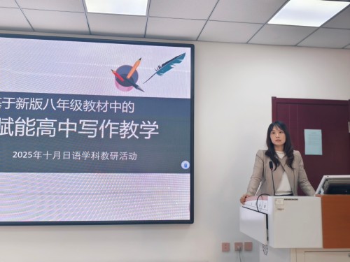 市研训教师楚乔首先深入剖析了初中新版课标教材的新形式语篇及体裁特点,并结合近年高考日语新题型写作的评分标准与命题趋势,为参会教师进行了系统的梳理和解读。她强调,在新教材与高考要求的衔接中,写作教学需要更加注重情境的真实性、思维的逻辑性与表达的多样性。