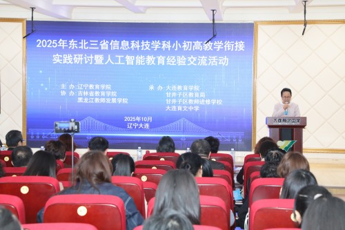 10月15日至16日,由辽宁教育学院主办,吉林省教育学院、黑龙江教师发展学院协办,大连教育学院联合甘井子区教育局、区教师进修学校及大连育文中学共同承办的“东北三省信息科技学科小初高教学衔接实践研讨暨人工智能教育经验交流活动”在大连举办。大连教育学院副院长赵妤婕出席开幕式并致辞,辽宁教育学院信息科技教研员赵春芝主持活动。