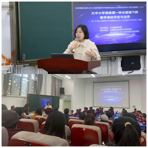 活动中,东北师范大学大连保税区实验学校江宏君老师呈现低年级读本《新时代新生活》课例,以天鹅湖社区变迁、老物件故事等生活化素材,引导学生从“小变化”感知“大成就”;瓦房店市驼山乡中心小学程宪东老师展示高年级读本《绿水青山就是金山银山》课例,体现学段差异化设计思路。课后,江宏君、王晓迎围绕教学设计思路展开访谈,分享“以生为本”的素材开发策略;东北师范大学大连保税区实验学校主任孙梦汇报了学校道德与法治学科建设成果;李雪做微讲座,引领《读本》典型素材开发与运用的关键路径。