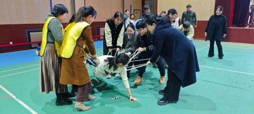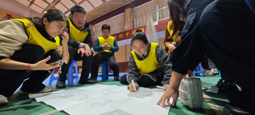 暖身“大风吹”的旋律,吹散了拘谨、热烈气氛;“拍肩背”的互助,放松了神经,缓解了压力;共起队名、共绘队旗、共同呼喊口号,迅速提升了团队凝聚力。团队的智慧凝结和信任托举,在“浑水摸棋”中,熔炼出战胜一切困难的力量,可替情绪内耗,可抵疲倦弥散,可涨幸福能力。