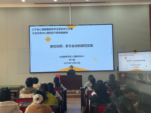 为指导学校优化高自杀风险学生的家校协同干预机制,提升学校多方会谈的专业性和科学性,10月23日,大连市高中心理研训活动暨辽宁省心理健康教育李玉荣名师工作室研讨活动在大连市第二中学举办。本次活动聚焦“家校协同:多方会谈的规范实施”,全市各高中(含民办)专兼职心理教师共73人参加。