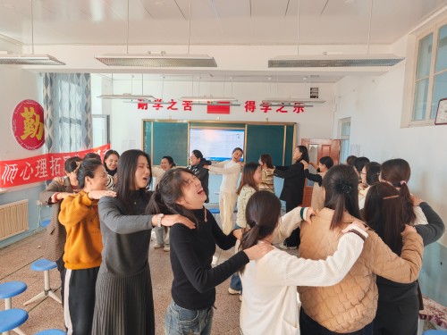 活动在“破冰”游戏中拉开帷幕。“大风吹”指令一出,教师们迅速换位,在欢笑中拉近彼此距离;“互动按摩”时,轻柔的拍打传递着同事间的温暖关怀;“桃花朵朵开”则将大家凝聚成团,现场气氛热烈,疲惫尽散。