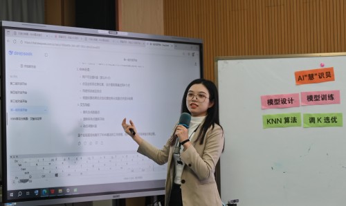 活动聚焦Python编程与人工智能教学的融合实践。大连海事大学附属学校苏婉莹老师执教《鸡兔同笼巧计算》一课,通过枚举法引导学生从自然语言描述过渡到流程图设计与Python编程实现,有效培养了学生的计算思维。大连嘉汇第三中学林姿岑老师则带来课例《AI“慧”识贝——基于KNN算法的机器学习》,组织学生在真实情境中体验数据标注、特征提取与模型训练的完整流程,深化了教师对人工智能原理的理解。市研训教师赵书阳结合课例进行了专业评课与标准解读。