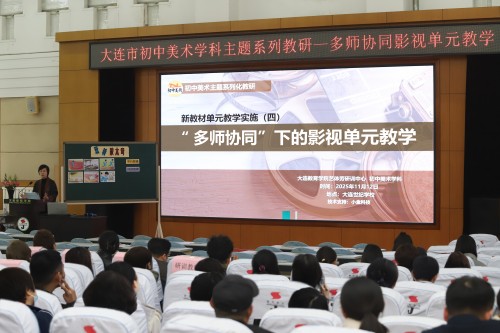 活动由初中美术研训教师叶晓辉主持,以“‘多师协同’下的影视单元教学”为主题。沙河口区教师进修学校关旭老师指导的团队成员陈依伊、杨轶婷老师分别执教现场课《多变的镜头》和《玩转蒙太奇》,大连世往学校王红玲老师分享了团队《神奇的镜头》单元教学探索,大连市109中学鞠秀洁老师结合现场课分享了本届国优相关课呈现的新理念与新方法。最后,叶晓辉老师以“凝心聚力协同育人深耕探究赋能成长”为题,提出“多师协同”单元教学实践建议,重点讨论了多师协同如何增值高效,单元教学如何深度展开。