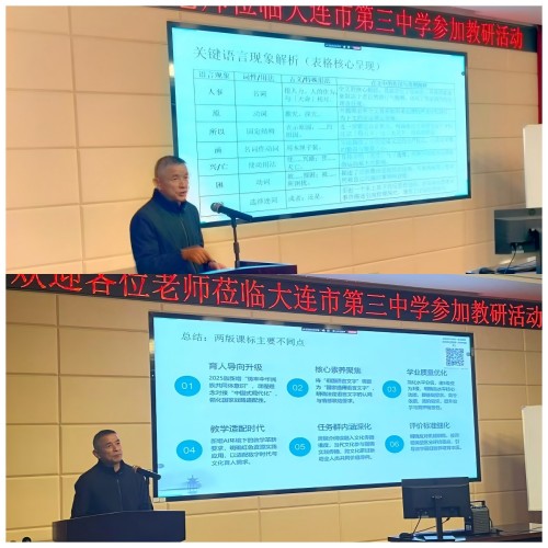11月27日,高二语文研训活动在大连市第三中学实验楼多媒体教室举行。活动聚焦AI赋能下的文言文教学观摩及设计策略交流这一主题,通过两节精彩的观摩课、两位一线教师的点评及市级教研员两个微专题讲座,向全市高二语文教师展示了文言文教学及其新课标2025年修订版的变化。