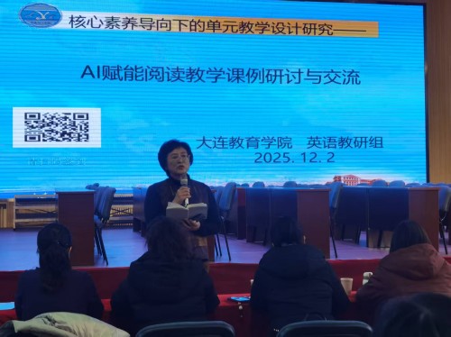 12月2日,大连教育学院初中研训中心英语研训教师单江红在大连市第七十七中学组织开展了以“AI赋能阅读教学课例研讨与交流”为主题的教研活动。