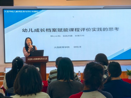 12月25日上午,学前研训中心在大连市人民政府机关幼儿园组织开展“幼儿教师反思与评价”专题教研活动。活动由市研训教师徐铭泽组织,部分县区学前教研人员及专题组园长、教师代表70余人参加活动。