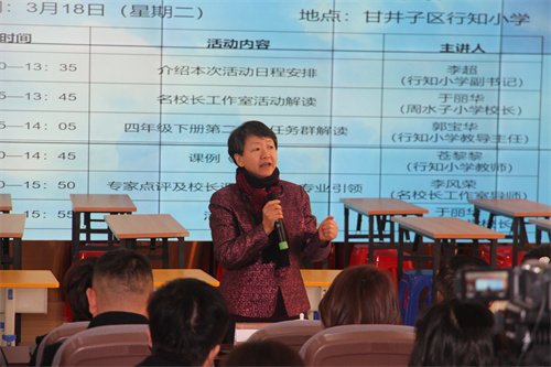于丽华校长做名校长工作室活动解读。于校长对名师工作室的系列活动进行回顾,并对本次活动进行了高屋建瓴地解读,让与会者明晰了活动的方向和目标。课程改革的核心在课堂,而任务群设计则是课堂教学的关键。