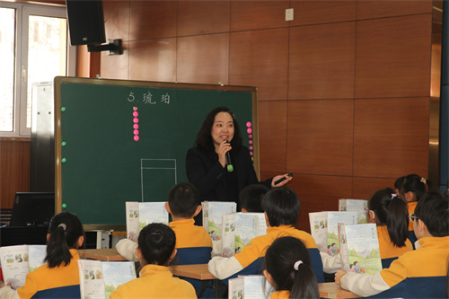 单元整体解读之后,行知小学苍黎黎老师执教了《琥珀》一课。课堂上,苍黎黎老师引领学生自主学习,目标清晰,环环相扣,有效落实阅读要素。“教-学-评-练”一体化课堂教学,为与会教师提供了参考和借鉴。