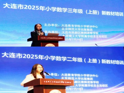 7月15-16日,大连市小学数学二、三年级新教材培训在大连理工大学附属学校圣克拉校区举办。本次培训由大连教育学院和北京师范大学出版集团联合主办,高新区教师进修学校和大连理工大学附属学校圣克拉校区承办。大连教育学院小学研训中心副主任刘稀凤、高新区教师进修学校校长郭红君、大连理工大学附属学校圣克拉校区校长孙永利、市区数学研训教师及全市1400余位数学教师参加现场活动,2200余位数学教师在线观看了直播。