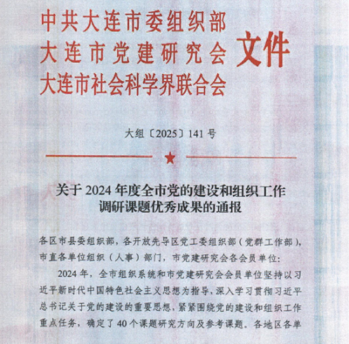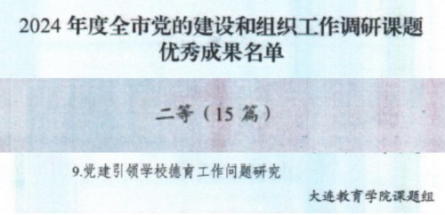 近日,市委组织部、市党建研究会、市社科联联合通报2024年度党的建设和组织工作调研课题优秀成果。学院有2篇调研课题成果入选,分别是《高质量党建赋能基础教育研训系统党建业务深度融合研究》获省级调研课题优秀成果三等奖;《党建引领学校德育工作问题研究》获市级调研课题优秀成果二等奖。