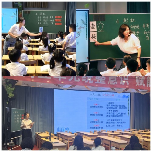 课例展示环节亮点纷呈。中山区明星小学王妍心老师执教《彩虹》第一课时,以“发现小达人”为载体,紧扣“发现亲情的美好”核心任务点燃课堂,孩子们结合生活中的真实发现;风景小学吴奇雯老师接棒第二课时,带领学生梳理文本逻辑,巧妙落实“对感兴趣内容表达感受与想法”的单元语文要素。两节课均紧扣单元任务、聚焦单元语文要素,真正达成“学语文—悟方法—用语文”的素养提升目标。