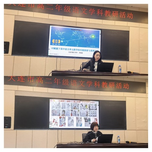 活动中,红旗高中盛江伟、大连八中刘晓旭、大连12中甘露,分别围绕AI技术于语文深度学习的探索、单元教学实践、整本书阅读尝试展开分享,结合实例剖析AI在语文教学中的应用路径。市研训教师宋亚科聚焦高二学段,讲解AI赋能下深度学习的策略与实施方法,为一线教学提供实操指引。