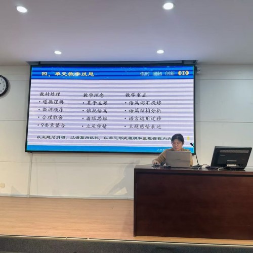 首先,大连市第八中学高二备课组组长李颖老师作《整合课程内容,落地核心素养——B6U2ALife’sWork单元整体教学设计》讲座;随后,2025年精品课部优获奖者陈晓宇老师就AI在本单元教学中的赋能设计和大家分享交流;接着,林红老师解读高中英语新课标(2017版2025修订),部署高二下研训工作及指导命题技巧;最后教师们研讨。