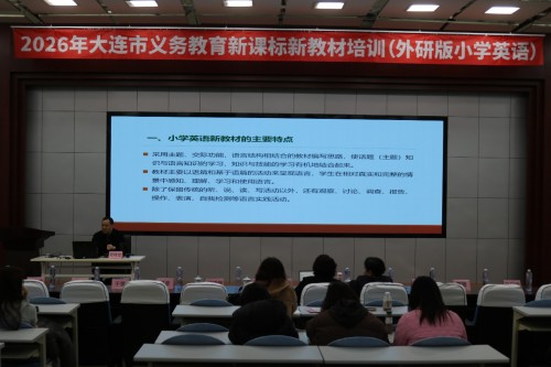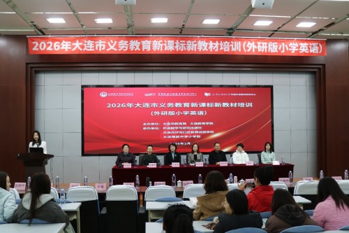 2月26日-27日,“2026年大连市义务教育新课标新教材培训(外研版小学英语)”在大连市沙河口区格致中学小学部举办。本次培训活动采取线上线下同步方式进行,市区400余名小学英语研训教师和小学英语教师参加现场活动,3000余名教师在线收看直播。在开幕式上,大连教育学院副院长赵妤婕为大会致辞,外研社基础教育出版分社社长张黎新讲话。
