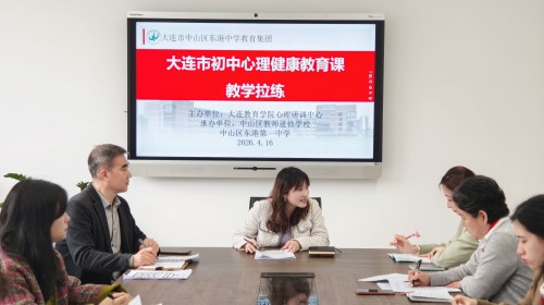 下午,初中心理课教学拉练在大连市东港第一中学举行。大连市东港第一中学李抒洋老师执教《心灵糖果大冒险》,以情境体验与互动探索引导学生觉察自身内外资源、增强心理韧性,中山区初中心理教师到场观摩。